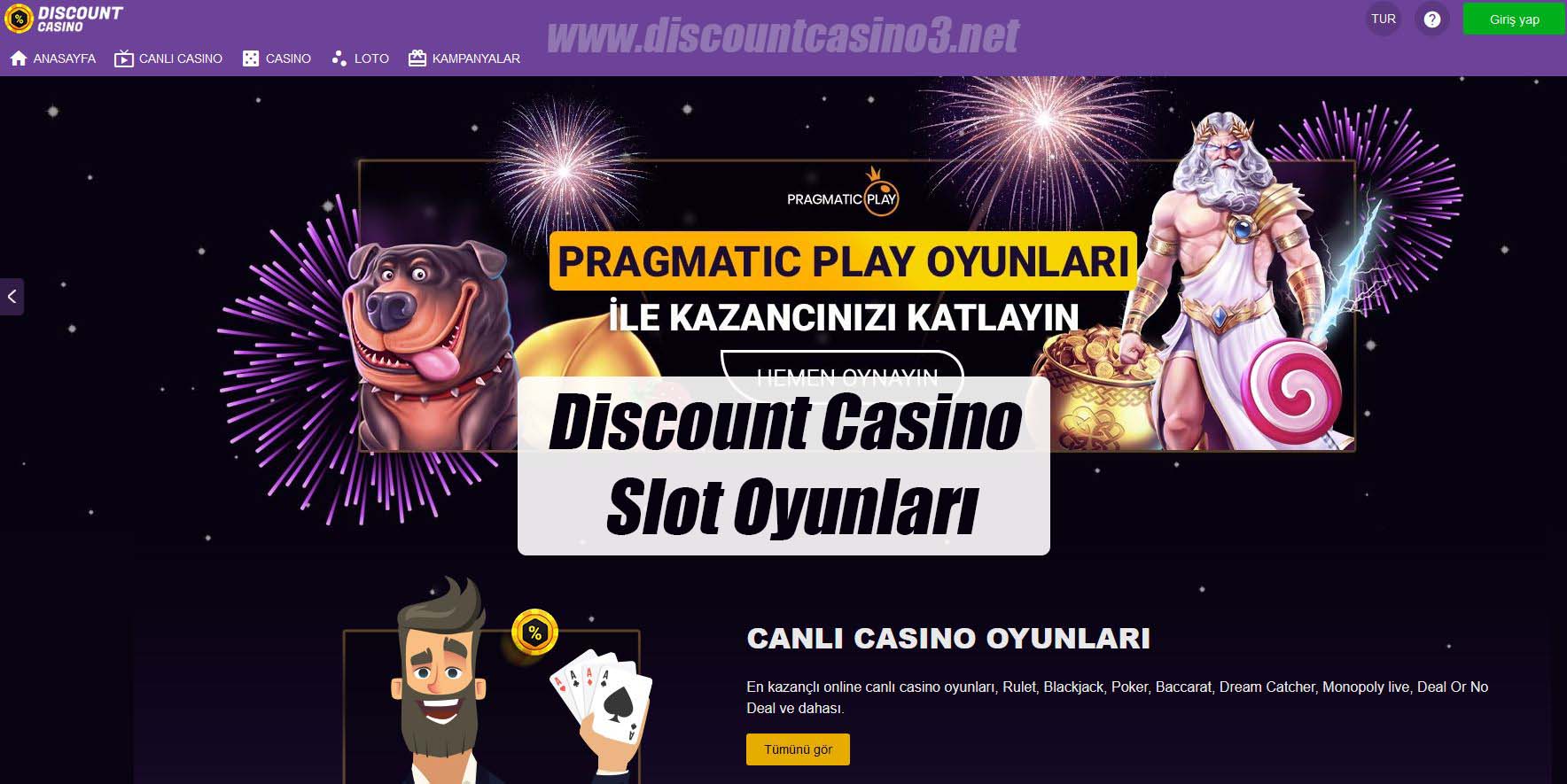 Discount Casino slot oyunlarında yenilikler var. Yepyeni Pragmatic oyunları ile Discount Casino Slot oyunları tam bir festival havasına büründü. Binlerce slot oyununu sana sunan bir casino menüsü arıyorsan, Discount Casino tam sana göre.
